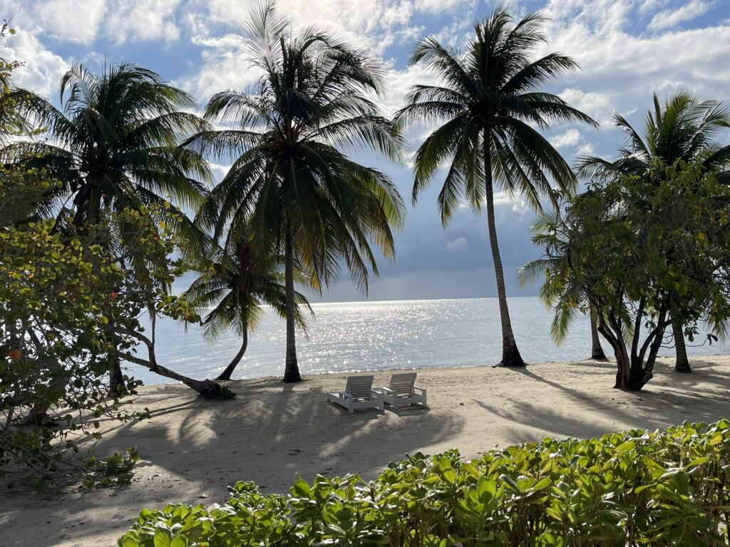 Ein gewaltiges Wolkenfeld zieht drohend heran. Kurz danach erleben wir sintflutartigen Regen. Und das ausgerechnet heute, wo wir einen Ausflug zum Schnorcheln auf eine der vorgelagerten Inseln gebucht haben. Das fällt wohl im wahrsten Sinne des Wortes ins Wasser, denken wir. „Lasst uns erstmal zum Bootsanleger fahren, vielleicht hört der Regen ja auf“, bemüht sich unser Guide Patrick um etwas Optimismus. Wir zwängen uns in Tauchanzüge, passen Flossen und Masken an – und es regnet munter weiter. Doch dann die Überraschung – kurz bevor wir Laughing Bird Caye erreichen, lösen sich die Regenwolken auf und die karibische Sonne taucht das kleine Eiland in schönste Farben. Sie ist nur eine von rund 200 Inseln, Mangroven- und Robinson Crusoe-Flecken, die das 180 Kilometer lange Belize Barrier Reef umsäumen. Weiter draußen liegt noch das Blue Hole, Belizes berühmtester Tauchspot. Das kreisrunde Loch ist 130 Meter tief und wurde in den frühen 1970er Jahren von Jaques Cousteau erforscht. Das lockt Taucher aus aller Welt an.