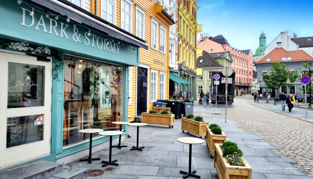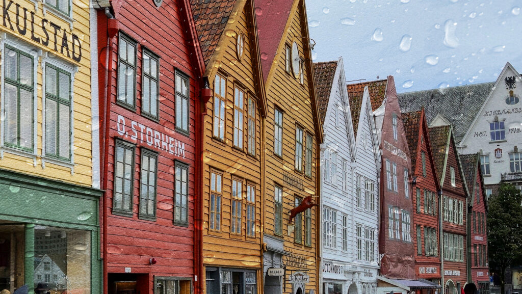 Für die übrigen Tage gilt: In Bergen regnet es nicht einfach, hier regnet es mit Stil. Wer sich ungeachtet der meist düsteren Wettervorhersagen darauf einlässt, entdeckt eine Stadt, die selbst unter grauen Wolken in den schillerndsten Farben leuchtet. Zwischen Kopfsteinpflaster und Kunstgalerien, zwischen Seilbahn und Holzhäusern, ist Bergen ein Ort, der beweist: Man muss nicht immer Sonnenschein haben, um strahlende Erinnerungen zu sammeln. Und auch die Einheimischen nehmen die Tatsache, dass lang anhaltender Regen an manchen Tagen lediglich von kurzen Schauern unterbrochen wird, mit Humor. Es gibt sogar ein Sprichwort, das besagt, dass man in Bergen gar nicht nass wird, sondern einfach nur ein bisschen norwegischer.