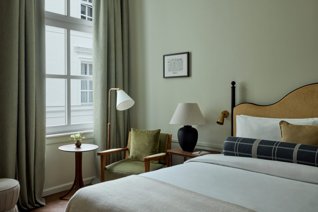 Die öffentlichen Bereiche orientieren sich an der Atmosphäre traditioneller Wiener Kaffeehäuser und Brasserien. Tagsüber präsentieren sie sich als ruhige Orte der Begegnung, abends verwandeln sie sich in warme, stimmungsvolle Räume voller Charakter und subtiler Theatralik.