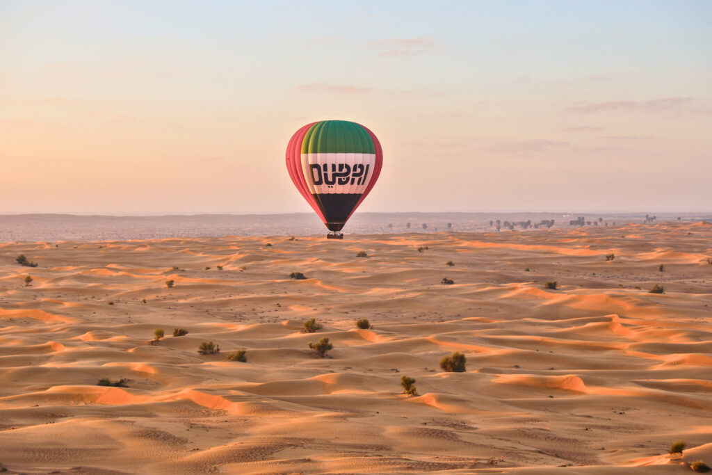 Die Wahlmöglichkeiten erstrecken sich bis in den Himmel. Bei Sonnenaufgang bietet ein Heißluftballonflug mit Hero Balloon Flights Dubai über die Wüste eine atemberaubende Perspektive: sanft gleitend über Dünen und Wildtiere, bevor der Ballon zu weiten Horizonten aufsteigt. Während des Fluges erfährt man kulturelle Geschichten, während ein Falke aus der privaten Sammlung einer königlichen Familie neben dem Ballon schwebt – eine Fortführung der jahrhundertealten emiratischen Falknerei-Tradition.