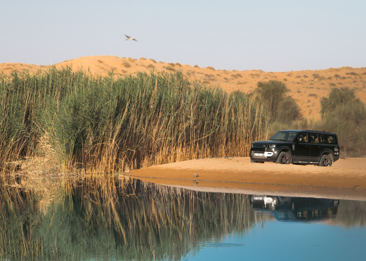 Die Gäste können durch die Dünen in einem ikonischen Land Rover aus den 1950er-Jahren reisen, offen für die Brise und die Nostalgie einer anderen Ära, oder den Komfort eines modernen, klimatisierten Land Rover Defender wählen. Die traditionelleren Reisenden bevorzugen vielleicht den Kamelritt durch die Dünen, den Spuren der Beduinen folgend, die vor Jahrhunderten diese Wüsten durchquerten.