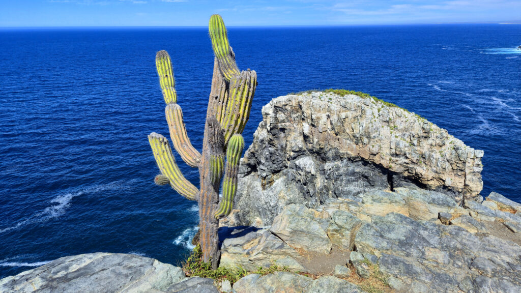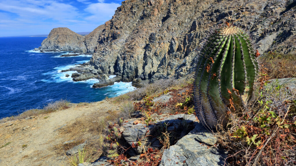 Die Sierra de la Laguna, das in Teilen bis zu 2.800 Meter hohe Gebirgsrückgrat der Halbinsel, bietet ein Terrain, das wie geschaffen ist für Entdecker. Mit geländegängigen Fahrzeugen geht es über ausgetrocknete Flussbetten tief hinein in das Hinterland, wo wilde Esel sowie Ziegen und auch Schlangen zu Hause sind. Der Staub wirbelt auf, während man an uralten Felsformationen vorbeifährt und plötzlich vor Wasserfällen steht, die in smaragdgrüne Felsenbecken stürzen. Die Flora und Fauna der Wüste offenbart sich bei genauerem Hinsehen als eine Ansammlung von Überlebenskünstlern. Kolibris schwirren zwischen Kaktusblüten, und mit etwas Glück kreuzt ein Kojote den Weg. Ganz sicher aber sind Kühe anzutreffen. Denn in der Region leben unzählige freilaufende Rinder. Wer zufällig keine sieht, stößt aber definitiv auf ihre Spuren in Form von Kuhfladen auf den sandigen Straßen.