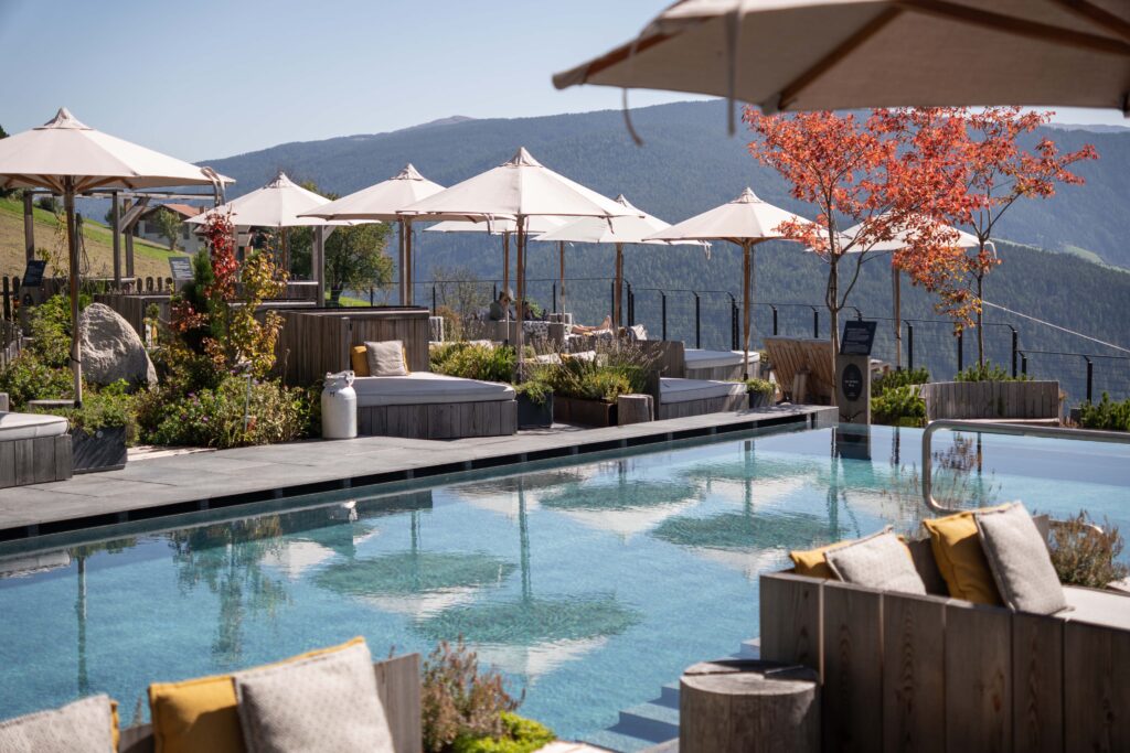 Als Ort, an dem Nachhaltigkeit, Regionalität, Wertschätzung und Respekt vor der Natur in allen Bereichen gelebt wird, ist das Boutique Biohotel Gitschberg auf Südtirols Sonnenhochplateau Meransen ein Kleinod fernab von Trubel, Hektik und Menschenmassen. Das naturverbundene Haus, 1.400 Meter über dem Alltag, steckt voller positiver Energie. Mit viel Liebe zum Detail führt Familie Peintner das Biohotel mit Boutique Charakter und nur 40 Zimmern, umgeben von einem einzigartigen Dolomitenpanorama. Fast alle Zimmer sowie die weitläufige Panoramaterrasse eröffnen einen unverstellten Blick über das Pustertal und Eisacktal. Die vielen nachhaltigen und ökologisch wertschätzenden Bestrebungen im Bereich Architektur, Gastronomie und Wellness haben dem Gitschberg die „KlimaHotel“® sowie „Bioland®“-Auszeichnungen beschert. Ein besonderes Schmuckstück ist auch der Panorama-BERGPOOL, der Sommer wie Winter nachhaltig beheizt wird und mit seinem belebenden Bergquellwasser ein einzigartiges Wellnessvergnügen verspricht. Als absolutes Highlight wurde 2025 im gesamten Haus das orthopädisch-bioenergetische Samina Schlafsystem installiert und 16 Power Sleeping Rooms mit spezieller Erdungsauflage und maximaler Regenerationskraft eingerichtet.
