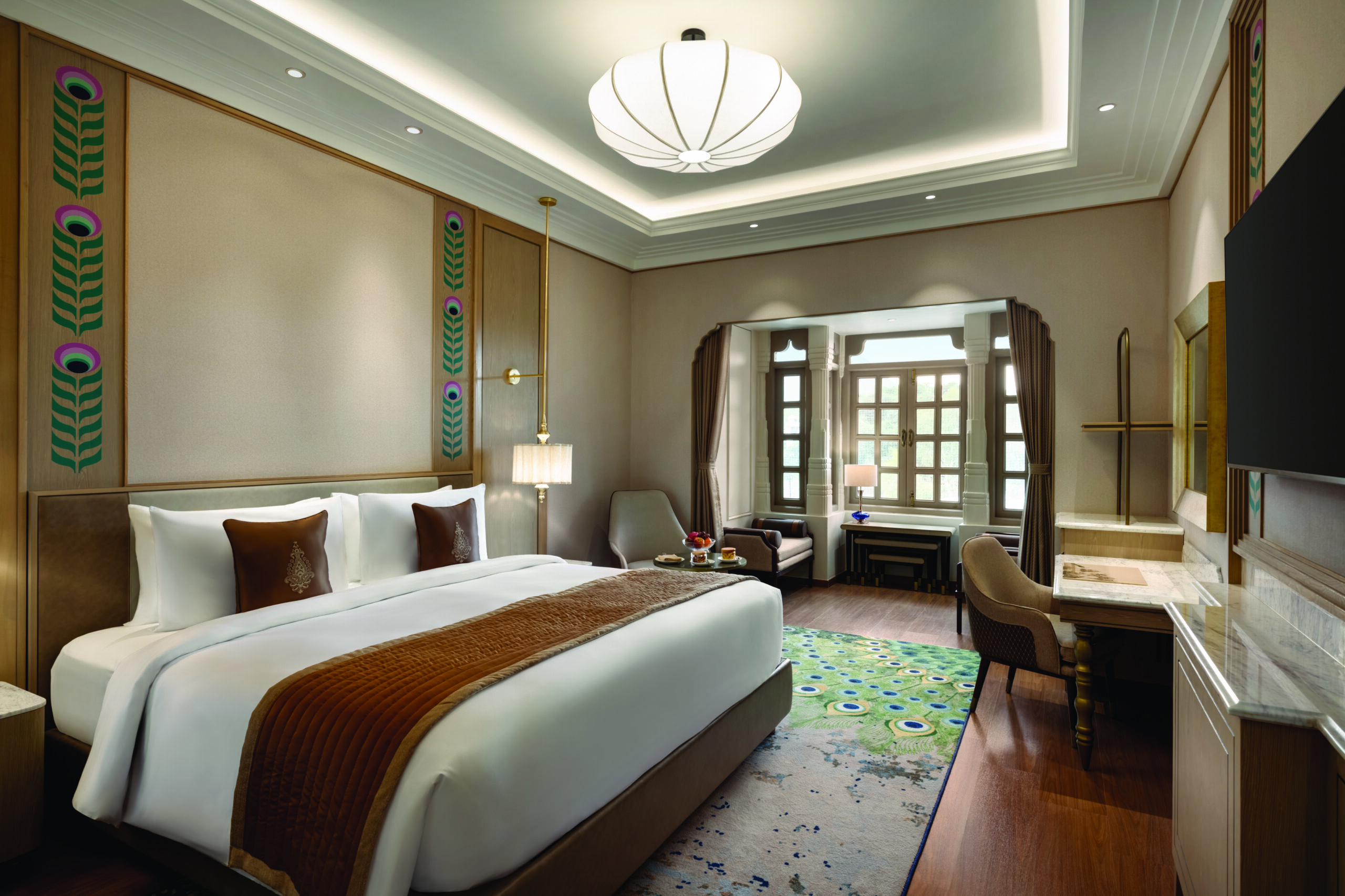 Das Dekor des Hotels ist eine moderne Reminiszenz an Udaipurs königliches Erbe. Die 140 Zimmer und Suiten verbinden zeitgenössischen Komfort mit traditionellen Akzenten wie den von der Palastarchitektur Rajasthans inspirierten Sitzerkern und den luxuriösen Marmorbädern sowie den in ausgewählten Suiten vorhandenen Jacuzzis. Der künftige „Palace Wing“ umfasst 60 weitere Zimmer, die sich durch ihre Verknüpfung von historischem Charme mit gehobenem Design auszeichnen. Kulinarisch positioniert sich das Resort als rein vegetarisch und offeriert in seinen beiden Restaurants eine sorgfältig kuratierte Speisekarte, basierend auf einer indischen und internationalen Küche mit frischen und lokalen Zutaten.